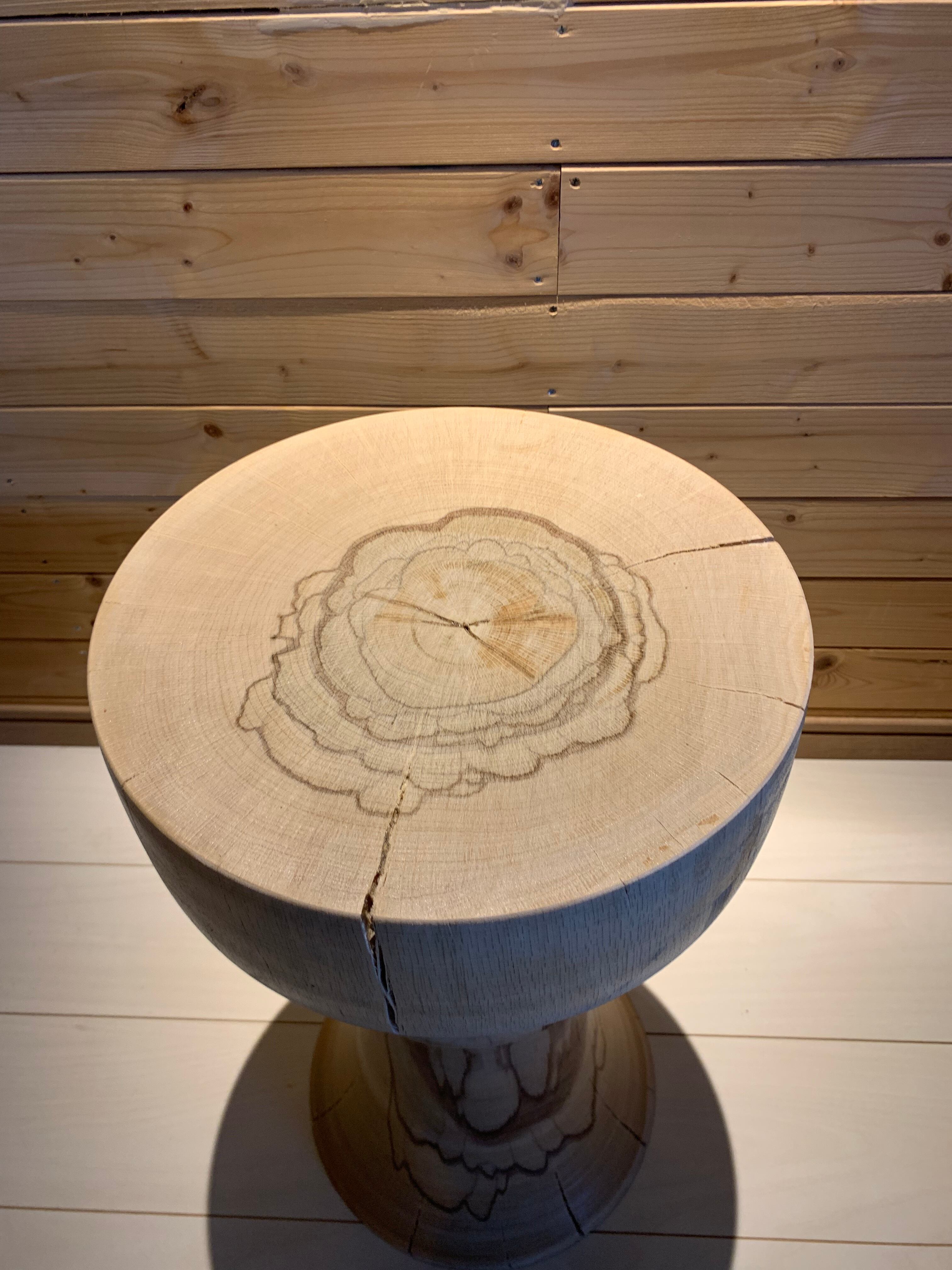 自然の丸太をまるごと使用し製作したダイナミックなログ(丸太)スツール。