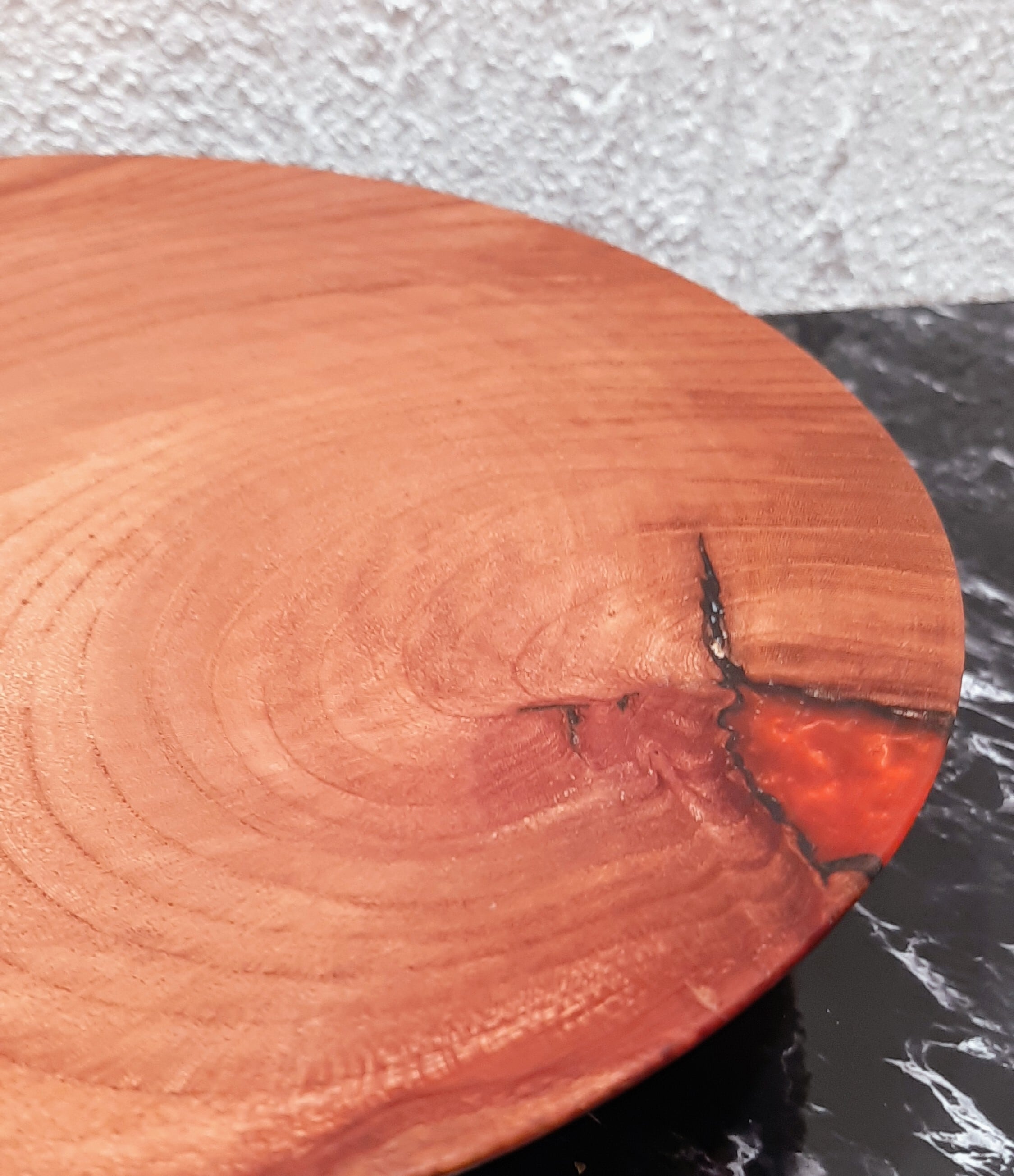 欅材使用の浅めウェーブプレートです。外側部分には、樹脂でできたレジンアクセントが施され、クールなデザインに仕上がっています❤︎